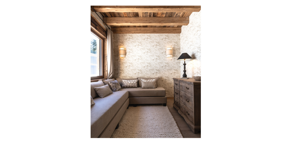 Speciaal voor het chalet hebben we een op maat gemaakte bank gerealiseerd, vervaardigd van luxe boxsprings voor ultiem zitcomfort. Om de uitstraling helemaal af te maken, hebben we unieke Manipur kussens toegevoegd. Deze bijzondere kussens geven de ruimte niet alleen een stijlvolle touch, maar zorgen ook voor extra gezelligheid en warmte.