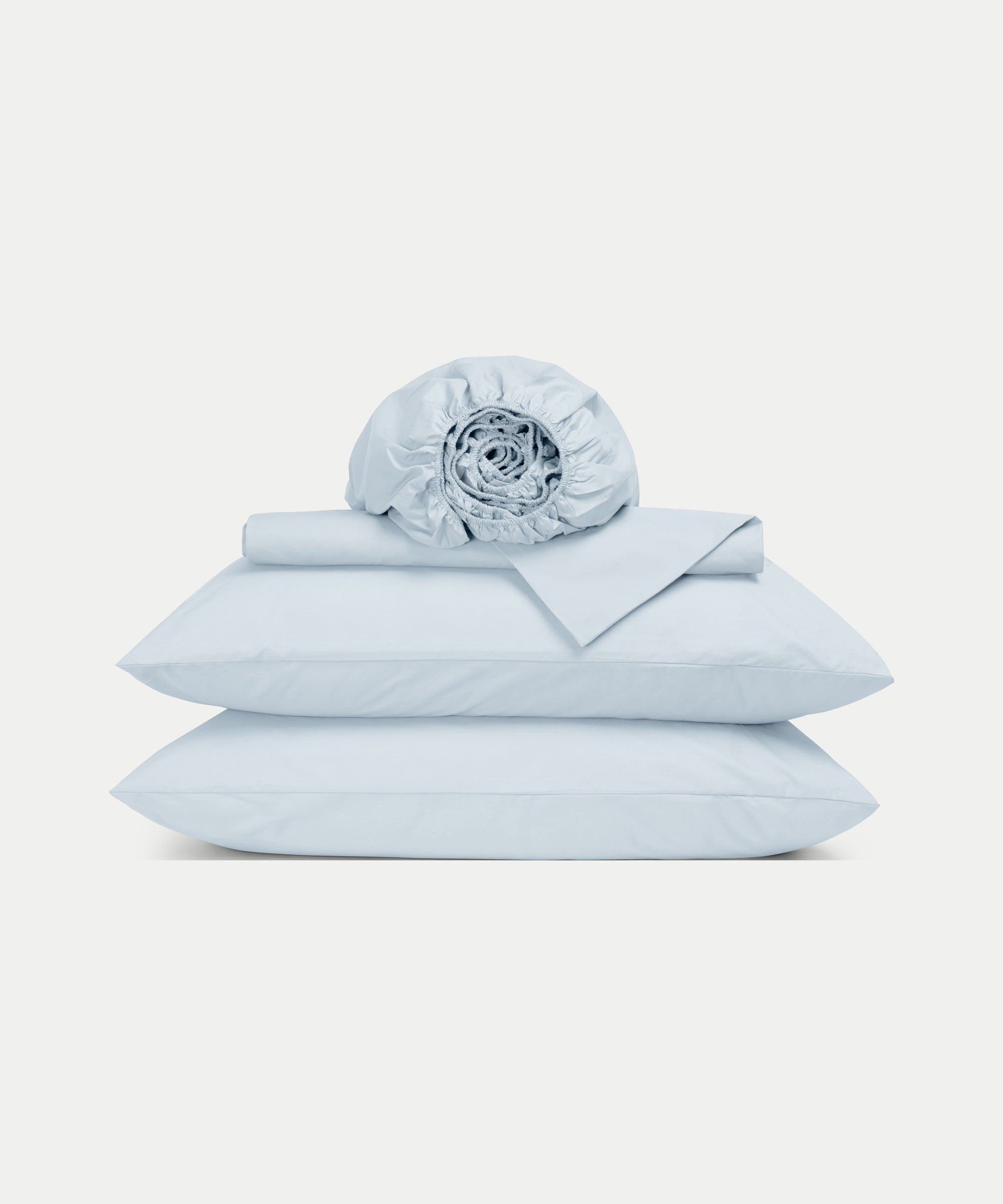 De complete set bestaat uit een dekbedovertrek, bijpassende kussensloop(en) en een hoeslaken in exact dezelfde kleur Pastel Blue. Perfect op elkaar afgestemd voor een rustige, luxueuze en evenwichtige uitstraling.